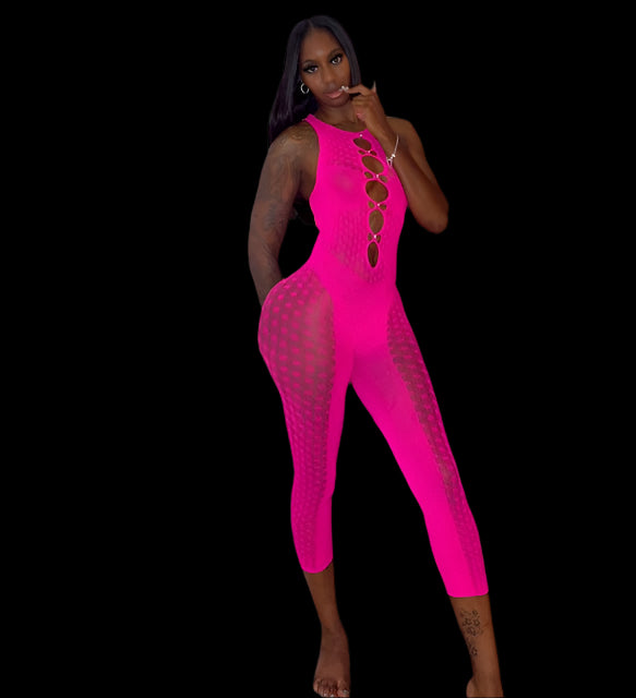 The romantic rose hue adds a playful yet sultry vibe, making it ideal for special moments or when you simply want to treat yourself. Featuring a flattering fit and attention-grabbing details, the CANDY Mesh Jumpsuit is your go-to piece for making unforgettable impressions.