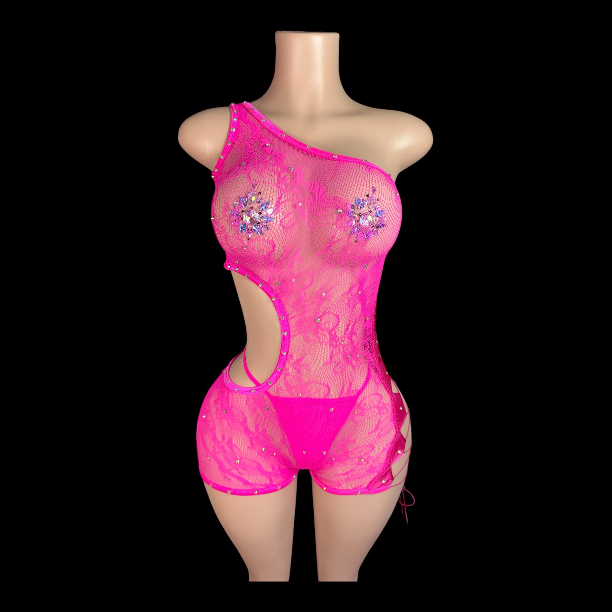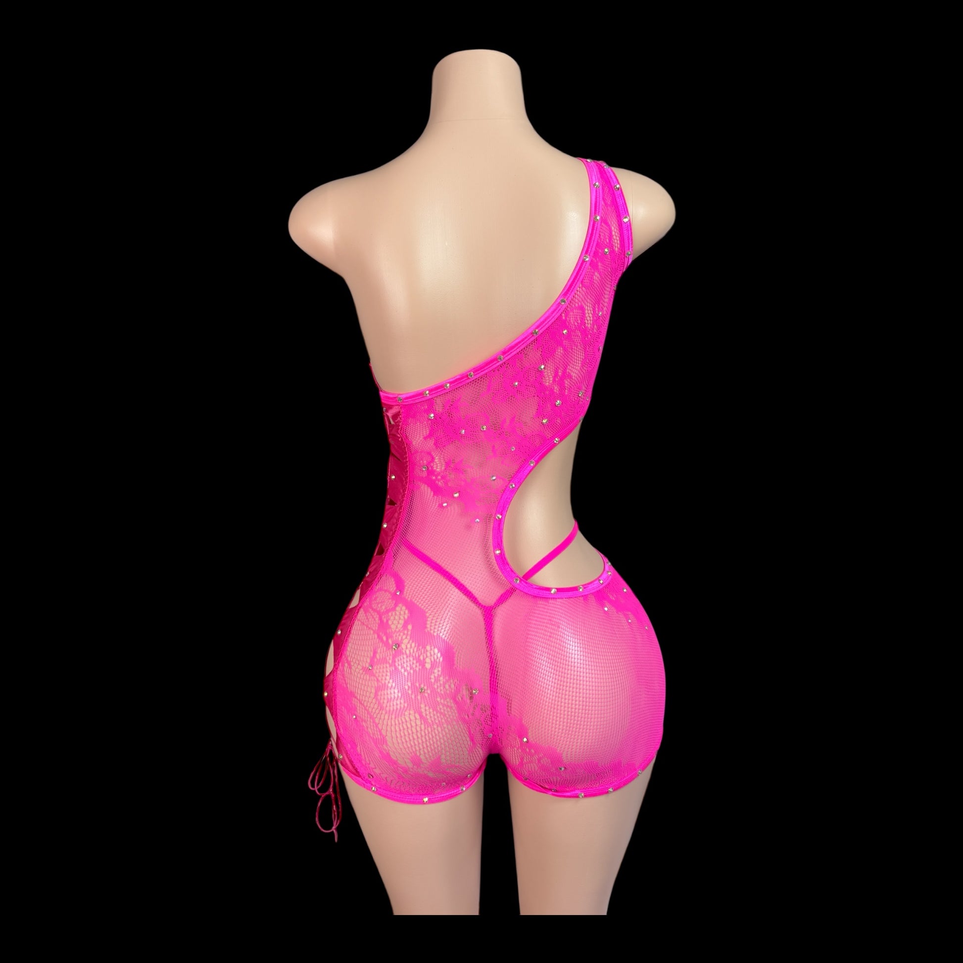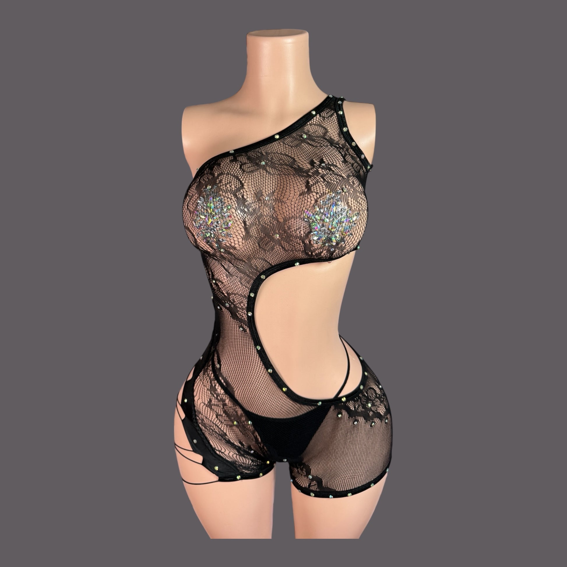 Bold and bewitching, the Priscilla One-Shoulder Lace Cutout Bodysuit is a seductive fusion of daring design and feminine mystique. With its sheer floral lace, daring cutouts, and asymmetrical silhouette, Priscilla commands attention while celebrating every curve. The bodysuit is outlined with shimmering studded accents, adding a hint of rebellious sparkle to this alluring masterpiece.