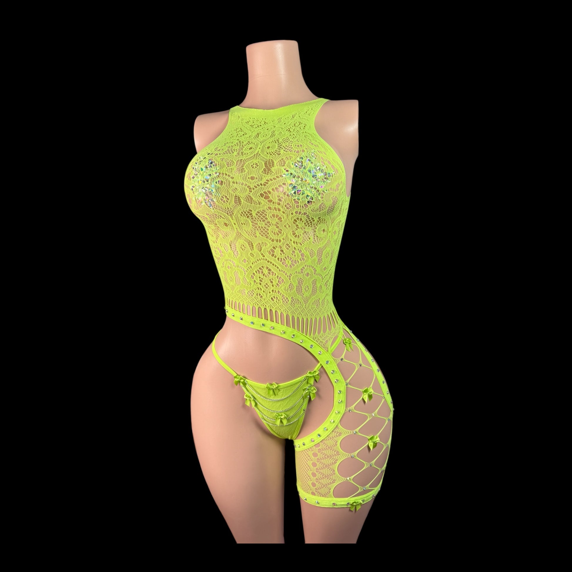Bold and daring, the “SLIMEY” in Green is a playful and edgy lingerie set for those who love to stand out. The neon green color pops with energy, while the breathable mesh and stretch fabric ensure comfort and flexibility. Whether you're spicing up a night of fun or just want something unique and eye-catching, the “SLIMEY” set delivers both style and seduction. With a fit designed to flatter and move with you, the “SLIMEY” is perfect for the adventurous spirit.