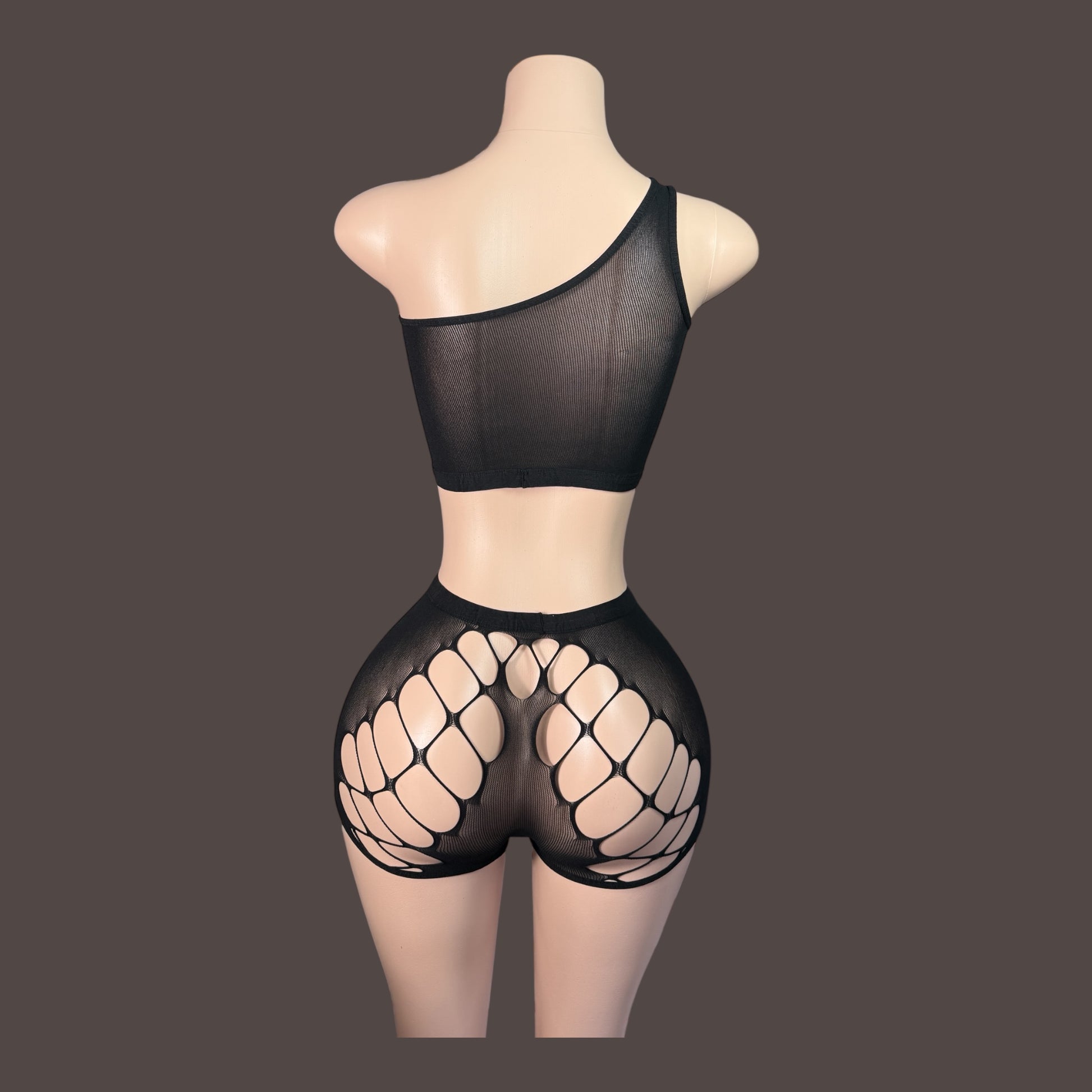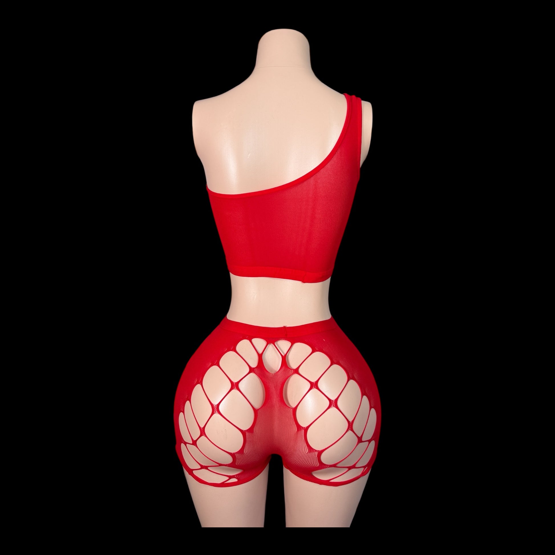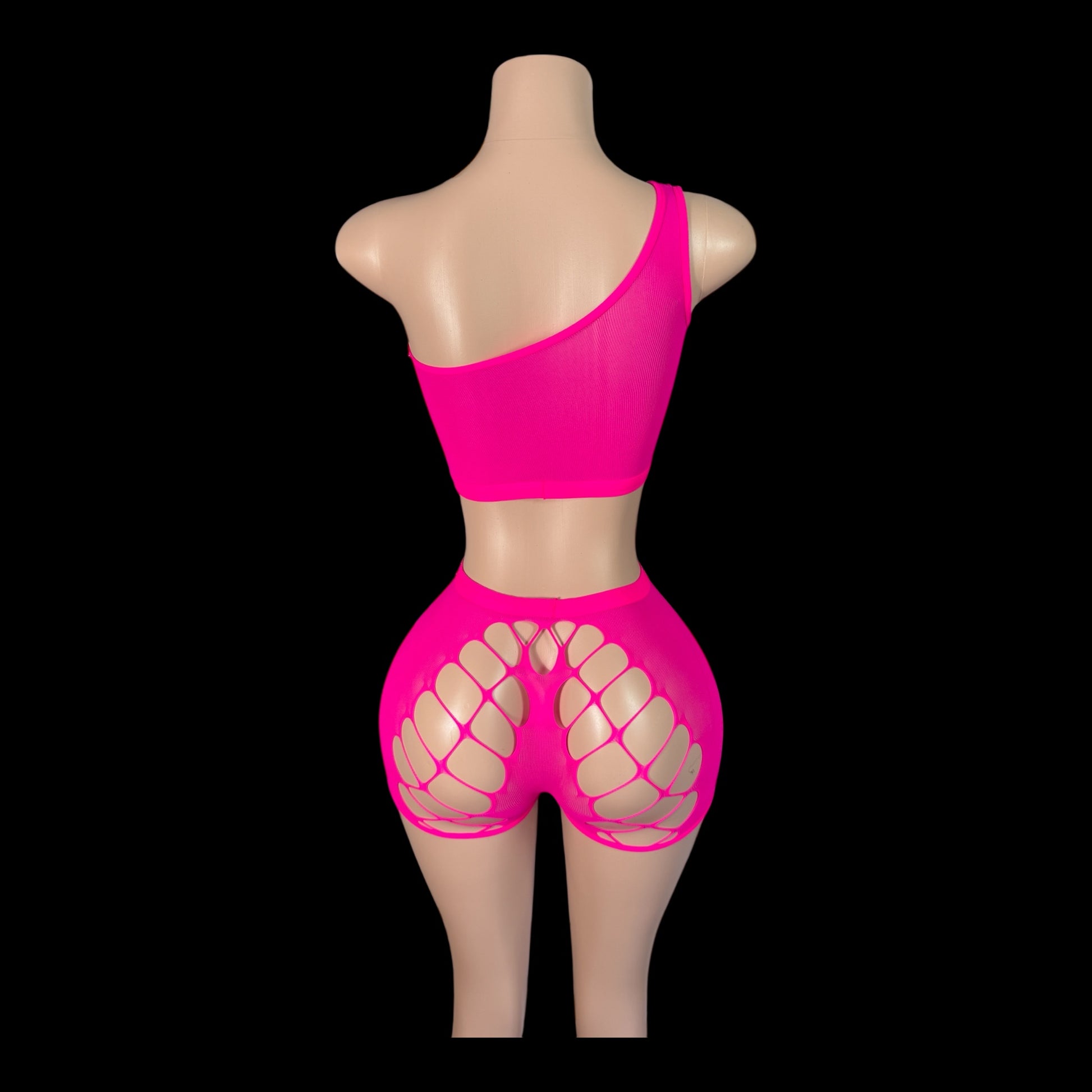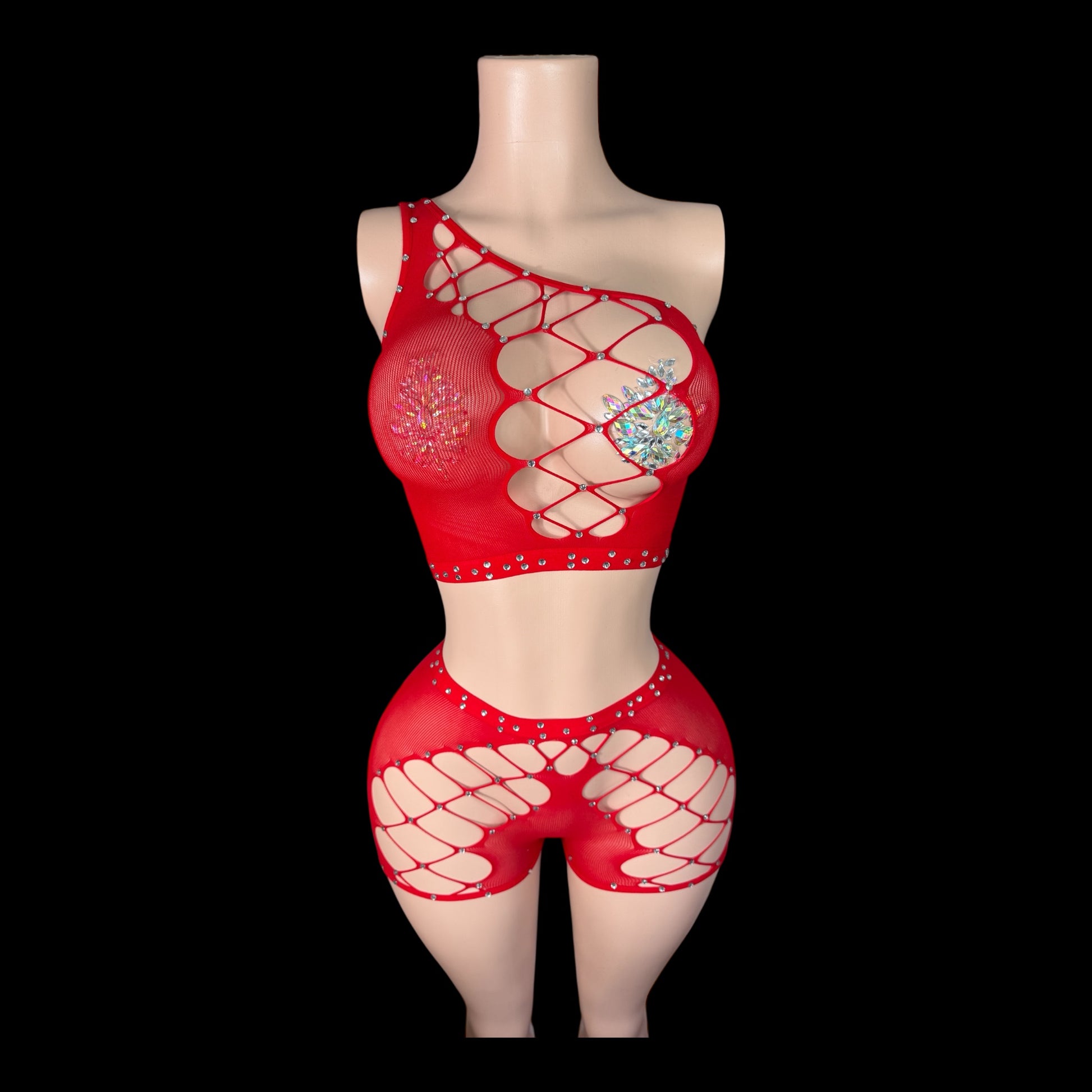 Two piece Rhinestone one shoulder crop top w/ shorts
